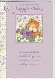 Happy Birthday Die Cut window, with colour images inside Message Outside: A warm greeting Item Code FOBD-CUTE-7 |